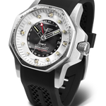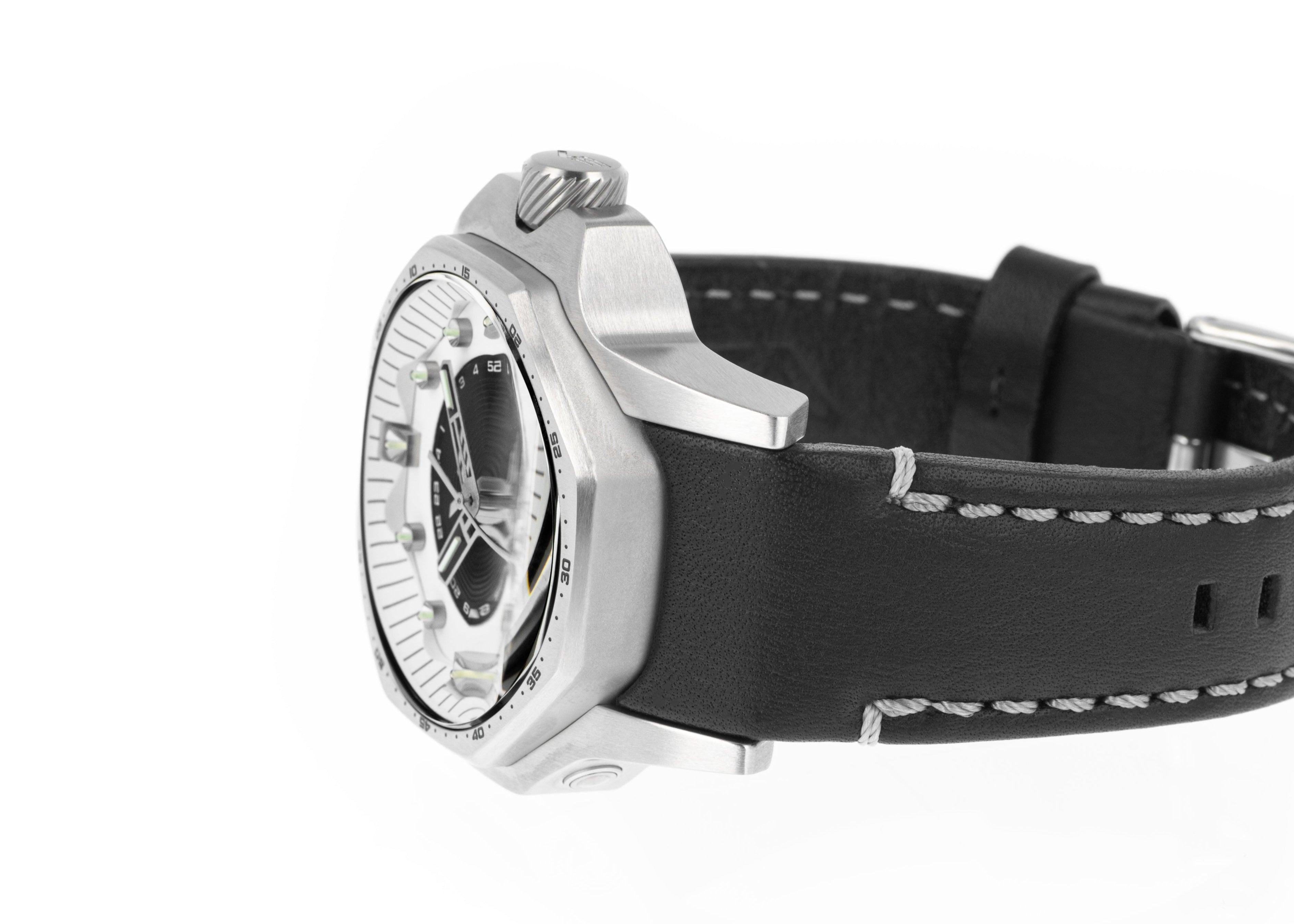 The Atomic Age Collection features special lines, each dedicated to one of the greatest nuclear physicists of the 20th century. This model is part of the Fermi line, which combines a unique techno-futuristic polygonal case design with advanced features such as tritium tube illumination and an automatic GMT movement.