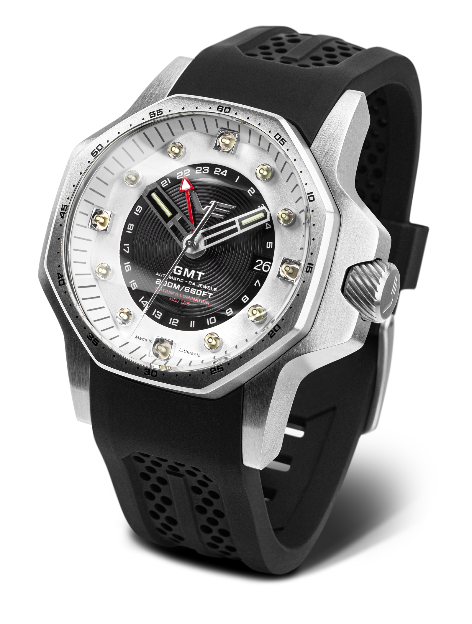 - The tritium illumination ensures maximum readability in darkness, requires no external charging, is maintenance-free, and guarantees continuous luminosity for at least 10 years.