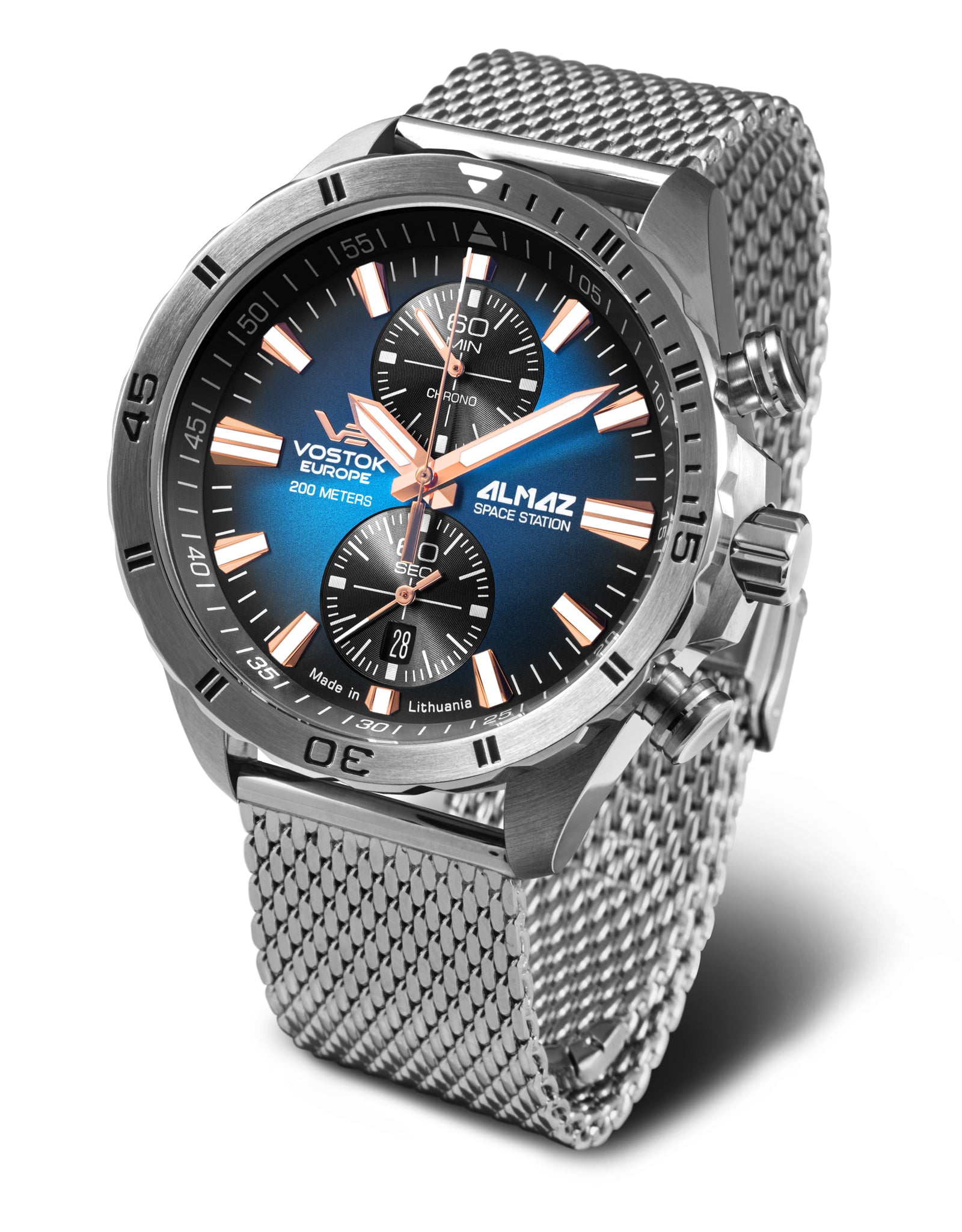 It fits all ALMAZ, Space Race, Expedition South Pole and Limousine models with a 22mm lug width (43 mm case). You can also pair it with other models if you’d like to mix and match colors or styles, even if it’s not originally designed for that specific case finish.