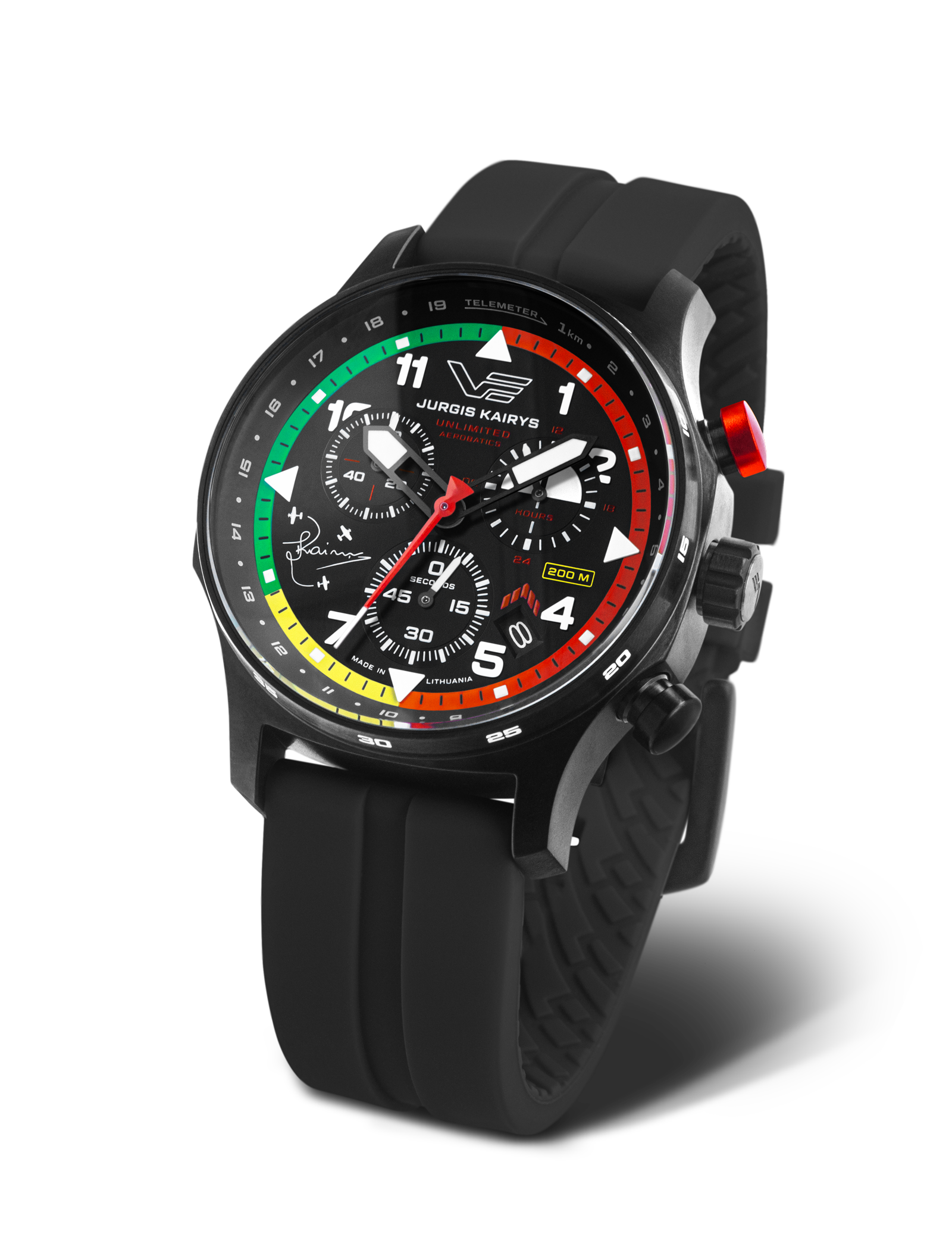 This watch is a bold tribute to the spirit of aerobatics and extreme aviation. Created in close collaboration with VE brand ambassador and Unlimited Aerobatics World Champion, Lithuanian pilot Jurgis Kairys, this timepiece carries forward a legacy of precision, endurance, and aviation-inspired design.